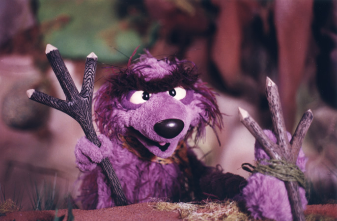 Hegdish with MegaBoo Feet. GM-III, 1995. Puppet by New York’s 3D Design. |